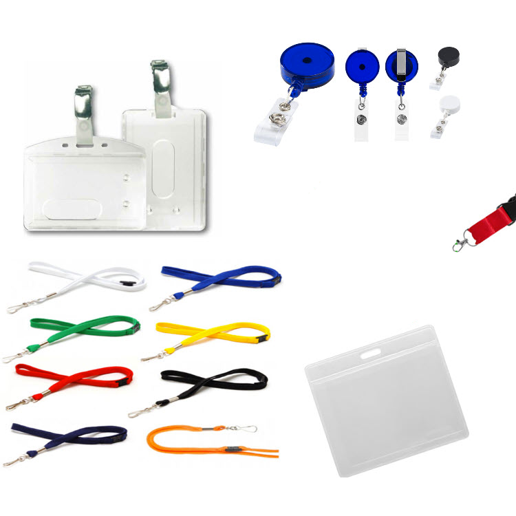 Porte-badge souple présentation verticale matière plastique bleu avec poche transparente, format grande carte, cordon en nylon et insertion bristol vierge. Dimensions cartes : toutes
